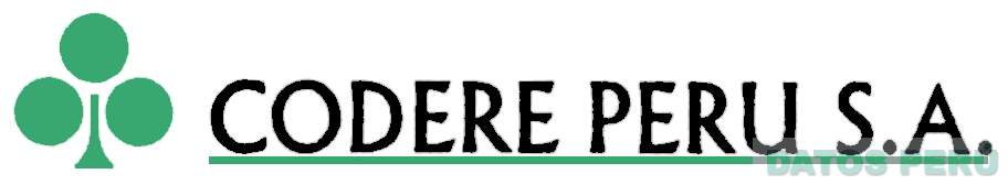 La denominación CODERE PERU S.A escrita en letras características subrayadas y al lado izquierdo la representación de un trébol, todo en la combinación de colores verde y negro; conforme al modelo adjunto