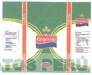 La etiqueta conformada por dos figuras ovoides cortadas por la mitad y ubicadas en forma horizontal, cuyos extremos se juntan en la parte central en donde se aprecia una franja ondeada que contiene la denominación COGORNO escrita en letras características, sobre ésta la representación estilizada de tres espigas de trigo incrustadas sobre una base circular con dos cintas; en los extremos laterales se aprecia la denominación COGORNO escrita en letras características en forma vertical, dentro de una franja, en la parte superior de la figura ovoide derecha, se aprecia la denominación COGORNO escrita en letras características dentro de una franja ondeada, en cuya parte superior se observan tres espigas de trigo, y demás leyendas alusivas al producto; todo en los colores amarillo, azul, verde, rojo y blanco; conforme al modelo adjunto