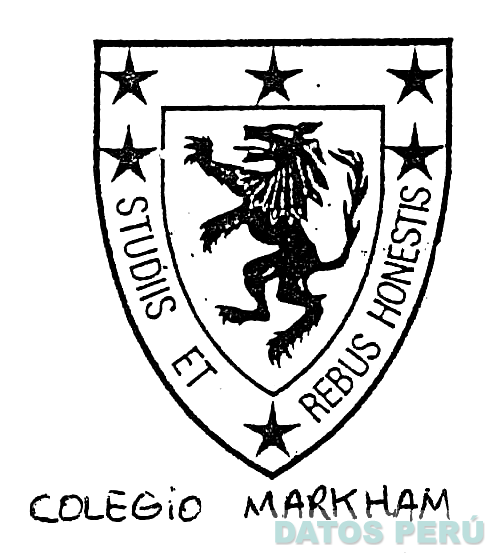 La denominación COLEGIO MARKHAM y el escudo que contiene seis estrellas y la representación de la figura estilizada de un león, conforme al modelo adjunto