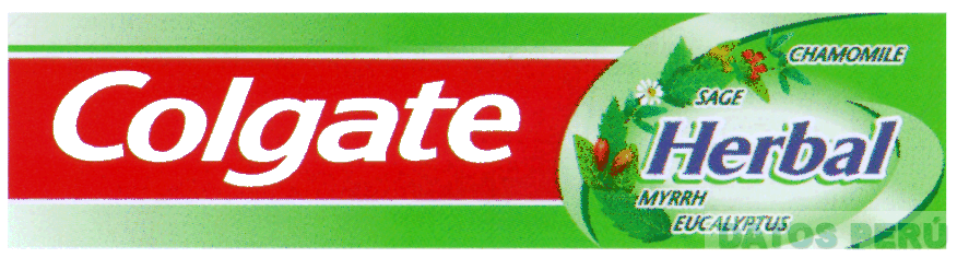 EL ENVASE QUE PRESENTA LA DENOMINACION COLGATE HERBAL Y DISEÑO DE FLORES Y HIERBAS, TODO EN LOS COLORES ROJO, VERDE, AMARILLO, AZUL Y BLANCO, CONFORME AL FACSIMIL ADJUNTO,