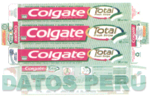 EL EMPAQUE DE FONDO COMPUESTO POR RAYAS DIAGONALES CONTENIENDO AL LADO IZQUIERDO, SOBRE UNA FRANJA ANCHA, LA DENOMINACION COLGATE Y AL LADO DERECHO EL DISEÑO DE UNA FIGURA OVAL FORMADA POR UNA FLECHA, CONTENIENDO LA DENOMINACION TOTAL FRESH STRIPE, TDO EN LOS COLORES VERDE, ROJO, BLANCO, AMARILLO, AZUL Y DORADO, CONFORME AL FACSIMIL ADJUNTO,
