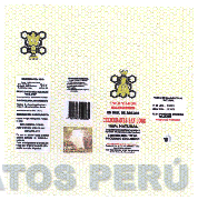 La envoltura conformada por la denominación COLMENARES SAN JOSE escrita en letras características, en la parte superior se aprecia la figura estilizada de una abeja con una corona, encima de una figura irregular y las frases PROPOLEOS EN MIEL DE ABEJA, PROPOLIS, 100% NATURAL y PRODUCTO ECOLÓGICO (sin reivindicar); a los costados se aprecian cuatro hexágonos; en la parte inferior izquierda se aprecia un cuadrado, conteniendo la representación de un paisaje conformado por una catarata, vegetación alrededor y la frase NO DEJEMOS QUE SE DESATEN NUEVAS GUERRAS MENOS POR EL ACCESO AL AGUA (sin reivindicar); en todo el fondo se aprecian pequeños hexágonos; y frases alusivas al producto (sin reivindicar); todo en la combinación de colores rojo, crema, verde, dorado, negro, amarillo y marrón; conforme al modelo adjunto