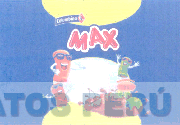 La etiqueta de color azul que contiene, tanto en la parte superior e inferior central, un semi-círculo de color amarilllo; en la parte superior central se aprecia la denominación COLOMBINA escrita en letras características al interior de una figura irregular de fondo azul (pantone blue 072), el punto de la letra I de la misma se encuentra representado por la figura de un pequeño rombo; al lado derecho se observa un rombo de color rojo (pantone red 485) y en su interior la figura estilizada de una media luna de color blanco, sobre la cual se aprecia la representación estilizada de una mujer sentada en color azul (pantone blue 072); debajo se observa la denominación MAX escrita en letras características de color rojo y blanco con bordes de color blanco y azul; en la parte inferior, una figura oval de color gris (sin reivindicar) con bordes amarillos y la representación caricaturesca de muñecos con lentes, asi como la representación estilizada de cerezas, gajos de naranja y limón en los colores rojo, anaranjado, amarillo y verde, y envueltas en figuras irregulares de color marrón; conforme al modelo adjunto