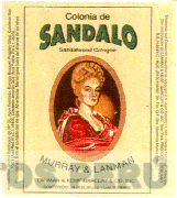 LA ETIQUETA RECTANGULAR DE FONDO COLOR BEIGE CON UNA FIGURA OVAL DE BORDE MARRÓN, CONTENIENDO LA FIGURA DE UNA DAMA EN COLORES NEGRO, ROJO, AMARILLO, ANARANJADO Y MARRÓN, DEBAJO LA DENOMINACIÓN MURRAY & LANMAN ESCRITA EN LETRAS CARACTERÍSTICAS EN COLOR VERDE Y EN LA PARTE SUPERIOR LA FRASE COLONIA DE SANDALO SANDALWOOD COLOGNE ESCRITA EN LETRAS CARACTERÍSTICAS (SIN REIVINDICAR EXCLUSIVIDAD DE LA MISMA) EN COLORES NEGRO Y VERDE, EN LAS PARTES LATERALES EN INFERIOR SE MUESTRAN PALABRAS ALUSIVAS AL PRODUCTO EN COLOR NEGRO; CONFORME AL MODELO ADJUNTO