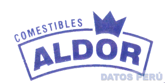 LA DENOMINACIÓN COMESTIBLES ALDOR ESCRITA EN LETRAS CARACTERÍSTICAS EN COLOR AZUL Y LA FIGURA ESTILIZADA DE UNA CORONA; CONFORME AL MODELO