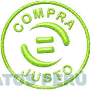 El logotipo conformado por la denominación COMPRA JUSTO y una figura irregular, todo dentro de un círculo, en los colores verde y blanco; conforme al modelo adjunto