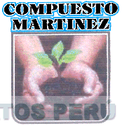 El logotipo conformado por la denominación COMPUESTO MARTINEZ escrita en letras características, donde se aprecia dos manos sosteniendo un cultivo, que consta de un tallo y hojas; todo en los colores negro, blanco, celeste, verde, marrón y anaranjado; conforme al modelo adjunto