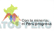 El logotipo conformado por la denominación CON LA MINERÍA, EL PERÚ PROGRESA escrita en letras características y la figura de un mapa del Perú, dos cerros y las figuras estilizadas de cuatro personas; todo en los colores verde pantone (C