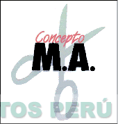 El logotipo conformado por la denominación CONCEPTO M.A. escrita en letras características, sobrepuesta a la representación estilizada de una tijera, todo en los colores negro, gris en diferentes tonalidades y rojo; conforme al modelo adjunto