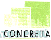 El logotipo conformado por la denominación CONCRETA en color negro y un paisaje urbano que consta de tres cuadrados de menor a mayor tamaño en diferentes tonalidades de verde; conforme al modelo adjunto