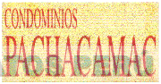 La denominación CONDOMINIOS PACHACAMAC escrita en letras características, sobre un fondo conformado por diversos puntos, todo en la combinación de colores rojo y amarillo; conforme al modelo adjunto