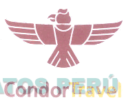 El logotipo conformado por la denominación CONDOR TRAVEL escrita en letras características y la figura estilizada de un cóndor, en los colores granate, amarillo y blanco; conforme al modelo adjunto