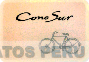 La etiqueta rectangular con las esquinas redondeadas conformada por la denominación CONO SUR escrita en letras características, y el diseño de una bicicleta, en los colores verde, en dos tonalidades, crema y amarillo; conforme al modelo adjunto