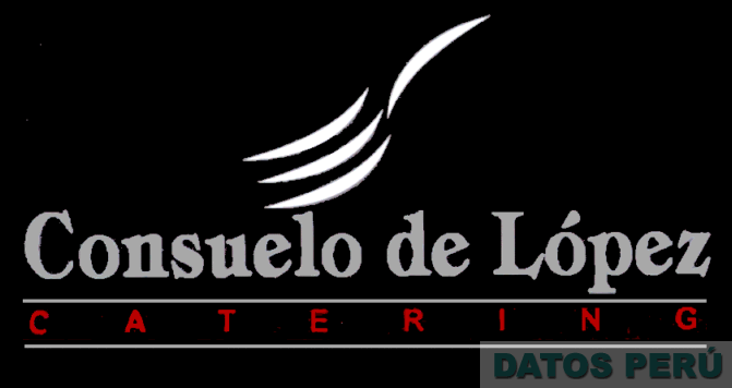 El logotipo conformado por el diseño estilizado formado por cuatro franjas de color blanco, dando la forma de tenedor, todo esto centrado en la parte superior, con la denominación CONSUELO DE LÓPEZ escrita en letras características de color plata, en la parte inferior la denominación CATERING en letras minúsculas estilizadas en color rojo entre dos líneas paralelas a esta en color plata, todo esto en un fondo negro en forma rectangular; conforme al modelo adjunto