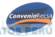 El logotipo conformado por la denominación CONVENIO RECSA escrita en letras características en la parte inferior una línea oblicua que empieza en su extremo izquierdo más angosto y termina en el extremo derecho más ancho, en el fondo se aprecia la figura estilizada de un triángulo al revés, todo esto dentro de una figura ovalada en los colores azul, azul marino, anaranjado y blanco; conforme al modelo adjunto
