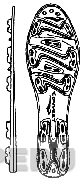 La forma de una planta de calzado conformada por doce cocadas de forma irregular dispuestas alrededor de la planta, en el centro la denominación CONVERT y la figura de una saeta; en el perfil se aprecian cinco cocadas; conforme al modelo adjunto