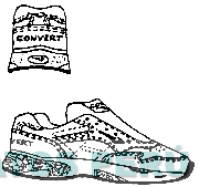 LA FORMA DE UNA ZAPATILLA, EN LA QUE SE APRECIAN DIFERENTES CORTES DE VARIADAS FORMAS Y TAMAÑOS ACOMPAÑADOS DE PESPUNTES Y/O COSTURAS, EN EL TALON SE APRECIA LA DENOMINACION CONVERT ESCRITA EN LETRAS CARACTERISTICAS; CONFORME AL MODELO ADJUNTO