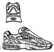 LA FORMA DE UNA ZAPATILLA QUE CONSTA DE FIGURAS GEOMETRICAS, TRAZADAS POR COSTURAS Y/O PESPUNTES, EN EL TALON SE APRECIA LA DENOMINACION CONVERT ESCRITA EN LETRAS CARACTERISTICAS, CONFORME AL MODELO ADJUNTO