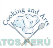 El logotipo conformado por la denominación COOKING AND ARTS escrita en letras características, debajo de ésta la figura estilizada de un gorro de cocinero, un trinche y una cuchara, todo en la combinación de colores marrón, plomo, celeste y azul; conforme al modelo adjunto