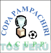El logotipo constituido por la denominación COPA PAMPACHIRI ACUPP escrita en letras características, y la representación estilizada de una copa y pelota de fútbol, en la combinación de colores azul, verde, negro, marrón y plomo; conforme al modelo adjunto