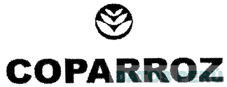 El logotipo conformado por la denominación COPARROZ escrita en letras características, en la parte superior la figura de un círculo en cuyo interior se encuentra la figura estilizada de una espiga, todo en los colores blanco y negro; conforme al modelo adjunto
