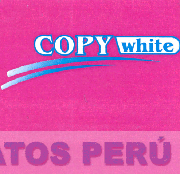 La denominación COPY escrita en letras características y la denominación WHITE dentro de una figura irregular y en la parte inferior dos rayas, en los colores fucsia, turquesa y blanco; conforme al modelo adjunto