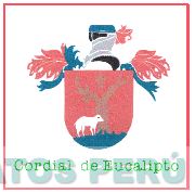 LA ETIQUETA BLANCA CON BORDES DE COLOR ROJO, EN CUYO INTERIOR SE APRECIA UN ESCUDO OBSERVÁNDOSE DENTRO DE ÉL LA FIGURA DE UN ÁRBOL SIN HOJAS Y UNA OVEJA SOBRE EL CÉSPED; EN LA PARTE SUPERIOR SE APRECIA LA FIGURA ESTILIZADA DE UN CABALLERO, Y DEBAJO LA DENOMINACIÓN CORDIAL DE EUCALIPTO; TODO EN LOS COLORES ROJO, NEGRO, VERDE, PLOMO, MARRÓN Y BLANCO; CONFORME AL MODELO ADJUNTO
