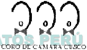 El logotipo conformado por tres figuras irregulares que representan a tres cantantes, en la parte inferior se aprecia la denominación CORO DE CAMARA CUSCO escrita en letras características, todo en color negro; conforme al modelo adjunto