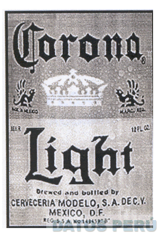LA ETIQUETA QUE CONTIENE LA DENOMINACION CORONA LIGHT, EN LETRAS CARACTERISTICAS, Y EL DISEÑO DE UNA CORONA Y DOS GRIFOS COLOCADOS EN FORMA SIMETRICA, UNO A CADA LADO DE LA CORONA; CONFORME AL FACSIMIL ADJUNTO