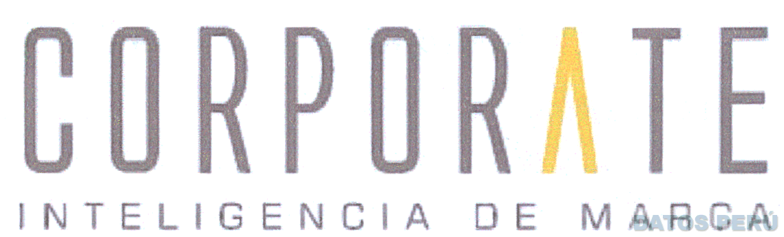 El logotipo conformado por la denominación CORPORATE INTELIGENCIA DE MARCA, escrita en letras características; en la combinación de colores gris y amarillo; conforme al modelo adjunto