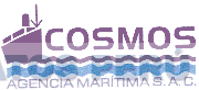 La denominación COSMOS AGENCIA MARÍTIMA S.A.C. escrita en letras características y la figura de un barco y dos líneas horizontales ondulantes a manera de olas en los colores azul, celeste y blanco; conforme al modelo adjunto