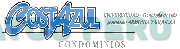 La denominación COSTAZUL escrita en letras características de color azul y bordes de color blanco y negro, subrayado por una línea de color negro donde se aprecia debajo la palabra CONDOMINIOS en color gris y al lado derecho la frase UNIVERCIUDAD-TECNOLOGIA DE VIDA