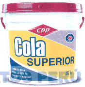 El logotipo conformado por la figura de un envase con tapa que en el centro presenta la denominación COLA SUPERIOR (sin reivindicar) escrita en letras características, en la parte superior se aprecia la denominación CPP escrita de forma característica, la cual se encuentra dentro de un rombo, en el fondo se aprecian tres segmentos conteniendo frases alusivas al producto (sin reivindicar) y una figura circular conteniendo un círculo y la denominación CPP escrita en letras característica dentro de un rombo, todo en los colores blanco, rojo, azul, amarillo y gris; conforme al modelo adjunto