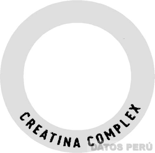 La denominación CREATINA COMPLEX escrita en letras características dentro de una figura circular en los colores blanco, negro y gris; conforme al modelo adjunto