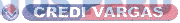 El logotipo conformado por la denominación CREDI VARGAS escrita en letras características, dentro de una figura rectangular con bordes redondeados, al lado izquierdo una figura circular conteniendo dos figuras irregulares, todo en la combinación de colores azul, rojo y blanco; conforme al modelo adjunto