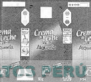 La etiqueta que contiene la denominación CREMA DE LECHE ALQUERÍA escrita en letras características, en cuya parte inferior se aprecia un recuadro que contiene el diseño que asemeja leche derramada que forma el contorno de la cabeza de una vaca, con la denominación ALQUERÍA escrita en letras características y los demás elementos alusivos al producto y su disposición dentro de la etiqueta; conforme al modelo adjunto