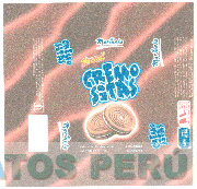 La etiqueta conformada por la denominación CREMOSITAS escrita en letras características en la parte central y a los lados derecho, izquierdo y superior la denominación MARINELA escrita en letras características, en la parte interior la figura estilizada de dos galletas, en la combinación de colores azul, blanco, rojo, amarillo, marrón claro y marrón oscuro; conforme al modelo adjunto