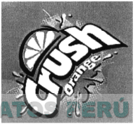 ETIQUETA DE FORMA CUADRANGULAR QUE CONTIENE LA DENOMINACION CRUSH Y BAJO ELLA LA DENOMINACION ORANGE, AMBAS EN LETRAS CARACTERISTICAS Y CORONADAS POR LA FIGURA DE UNA MEDIA NARANJA, CONFORME AL FACSIMIL ADJUNTO,