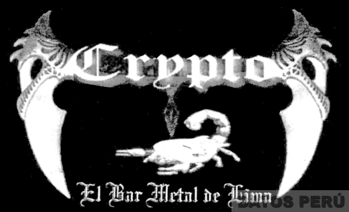 La figura de una cuchilla de doble hoja con filos encontrados que rodean a la denominación CRYPTO escrita en letras características y debajo de tal denominación se aprecia el dibujo de un escorpión con el cuerpo en forma de guitarra y, asimismo, debajo de ésta se aprecia la denominación EL BAR METAL DE LIMA escrita en letras características; conforme al modelo adjunto