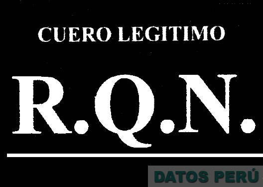 La etiqueta que contiene las letras estilizadas R.Q.N. subrayadas y en la parte superior la denominación CUERO LEGITIMO escrita en letras características, todo dentro de un recuadro, sin reivindicar colores; conforme al modelo adjunto
