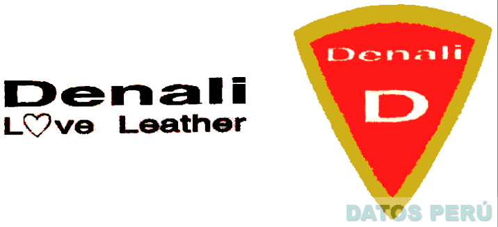 LA DENOMINACIÓN DENALI ESCRITA EN LETRAS CARACTERÍSTICAS, DEBAJO DE LA CUAL SE APRECIA LA DENOMINACIÓN LOVE LEATHER DONDE LA LETRA O ESTA REPRESENTADA POR UN CORAZÓN, Y LA FIGURA ESTILIZADA QUE ASEMEJA UN TRIÁNGULO INVERTIDO Y OVALADO DE COLOR ROJO CON LOS BORDES EN COLOR DORADO DENTRO DEL CUAL SE APRECIA LA LETRA D EN COLOR BLANCO Y SOBRE ÉSTA LA DENOMINACIÓN DENALI; CONFORME AL MODELO ADJUNTO