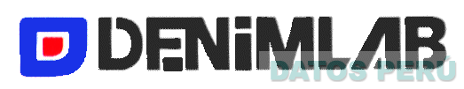 El logotipo conformado por la denominación DENIMLAB escrita en letras características, a cuyo lado izquierdo se aprecia una figura irregular, todo en la combinación de colores azul, rojo, blanco y negro; conforme al modelo adjunto