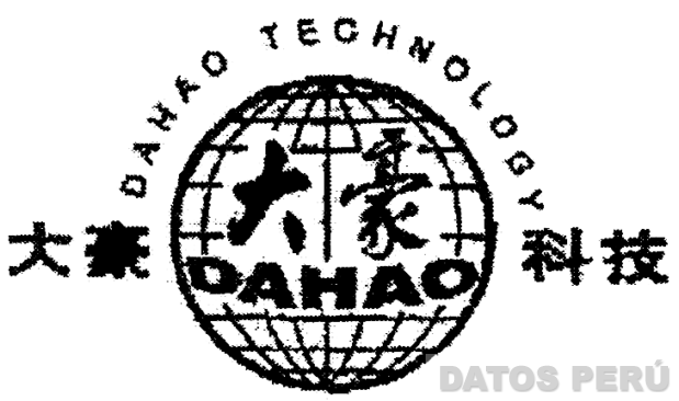 El logotipo conformado por la denominación DAHAO escrita en letras características debajo de dos caracteres chinos, todo dentro de un círculo con líneas oblicuas y horizontales; sobre el círculo y en forma oblicua se aprecia la denominación DAHAO TECHNOLOGY escrita en letras características, y en cada extremo dos caracteres chinos; conforme al modelo adjunto