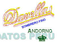 La denominación DAVELLA, subrayado color rojo y amarillo, debajo de la raya sombrero fino, color azul, inclinado hacia la derecha debajo la palabra ANDORNO y una corona de color verde, según modelo adjunto