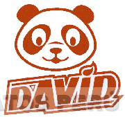 El logotipo conformado por la denominación DAVID escrita en letras características y dentro de una figura irregular, sobre ésta se aprecia la representación de un oso panda; todo en los colores rojo y blanco; conforme al modelo adjunto