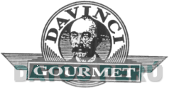 Las denominaciones DAVINCI GOURMET, en donde la denominación DAVINCI está escrita dentro de una figura de doble círculo, en cuyo centro esta la cabeza de un hombre y en cuya parte posterior hay una figura de rectángulo irregular a rayas; y sobre el círculo en la parte inferior y dentro de una figura rectangular; conforme al modelo adjunto