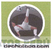 El logotipo conformado por la denominación DECHALACA.COM escrita en letras características en la parte superior se aprecia la representación estilizada de un jugador de fútbol con una pelota dentro de un círculo y a la vez esto dentro de un cuadrado, todo en los colores verde, negro, blanco, rojo, marrón y rosado; conforme al modelo adjunto.