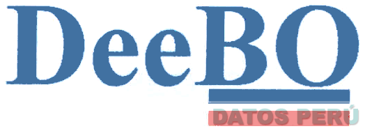 La denominación DEEBO escrita en letras características y dos líneas horizontales debajo de la sílaba BO, en los colores azul y rojo; conforme al modelo adjunto.