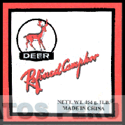 El logotipo conformado por un marco triple de colores negro y rojo, dentro del marco en la parte superior izquierda se aprecia la figura de un venado rojo dentro de un círculo y debajo la palabra DEER en color blanco con fondo negro; asimismo, se observa al centro la frase REFINED CAMPHOR en letras rojas estilizadas, todo sobre fondo blanco; conforme al modelo adjunto