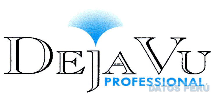 El logotipo conformado por la denominación DEJAVU escrita en letras características, sobre la letra J se aprecia una figura característica, debajo la palabra PROFESSIONAL (sin reivindicar), en los colores negro, blanco, celeste, celeste en degradé; conforme al modelo adjunto